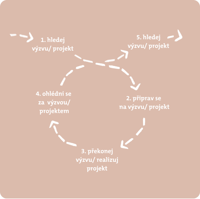 Plnění výzvy či projektu má určité fáze. Lze si je představit v cyklu, nebo v neustále rostoucí spirále.
