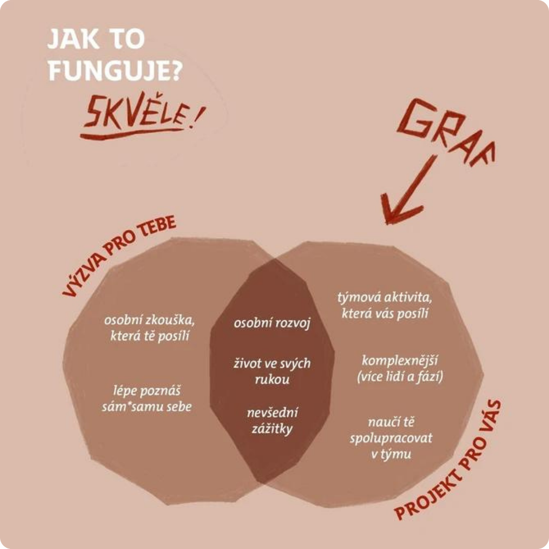 Zjednodušeně řečeno jde o skupinovou/ týmovou obdobu výzvy. Kromě osobního rozvoje skrze různé nové role v rámci skupiny cílí na osvojení týmové spolupráce, efektivní komunikaci, ale také na budování přátelských vztahů. V projektech lze společně pracovat na větších úkolech – více lidí více zvládne.