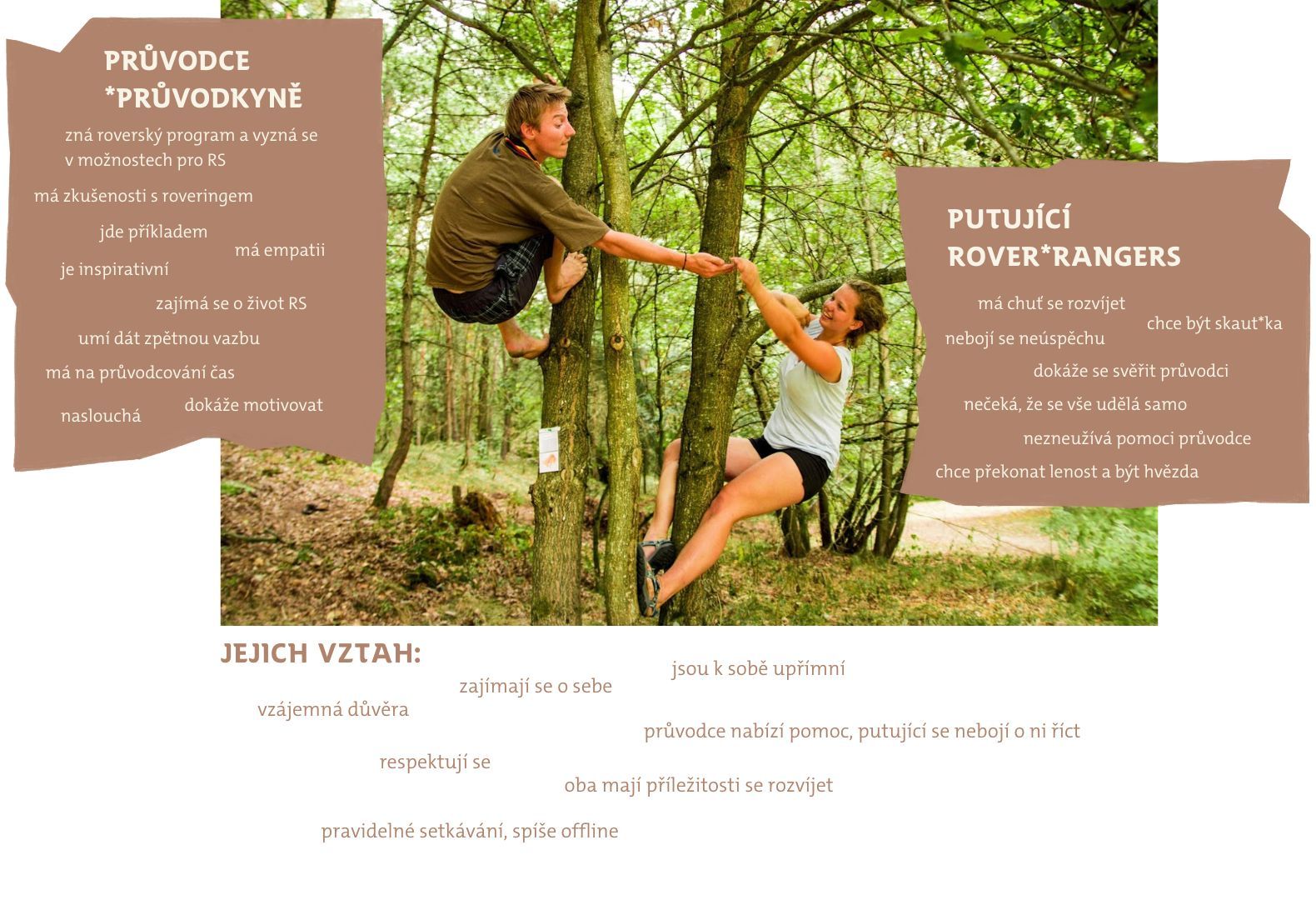 Být průvodcem*kyní nováčkům v roveringu ideálně znamená pojmout tuto roli více mentorsky (individuálnější péče, schůzky 1 na 1). Tento vztah umožňuje zajistit zejména těm, kteří jsou RS singles, kvalitnější výchovu v roverském věku.
