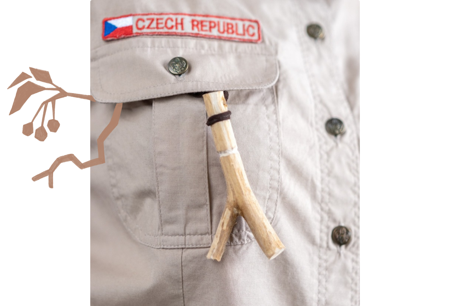 Symbolická roverská hůl je znamením tvé cesty roveringem. Možná sis ji odnesla ze vstupního rituálu, ale pokud ne, můžeš si ji snadno vyrobit sám*a. Hůl na kroji ukazuje, zda jsi putující (s jedním zářezem) nebo provázející (se dvěma zářezy).