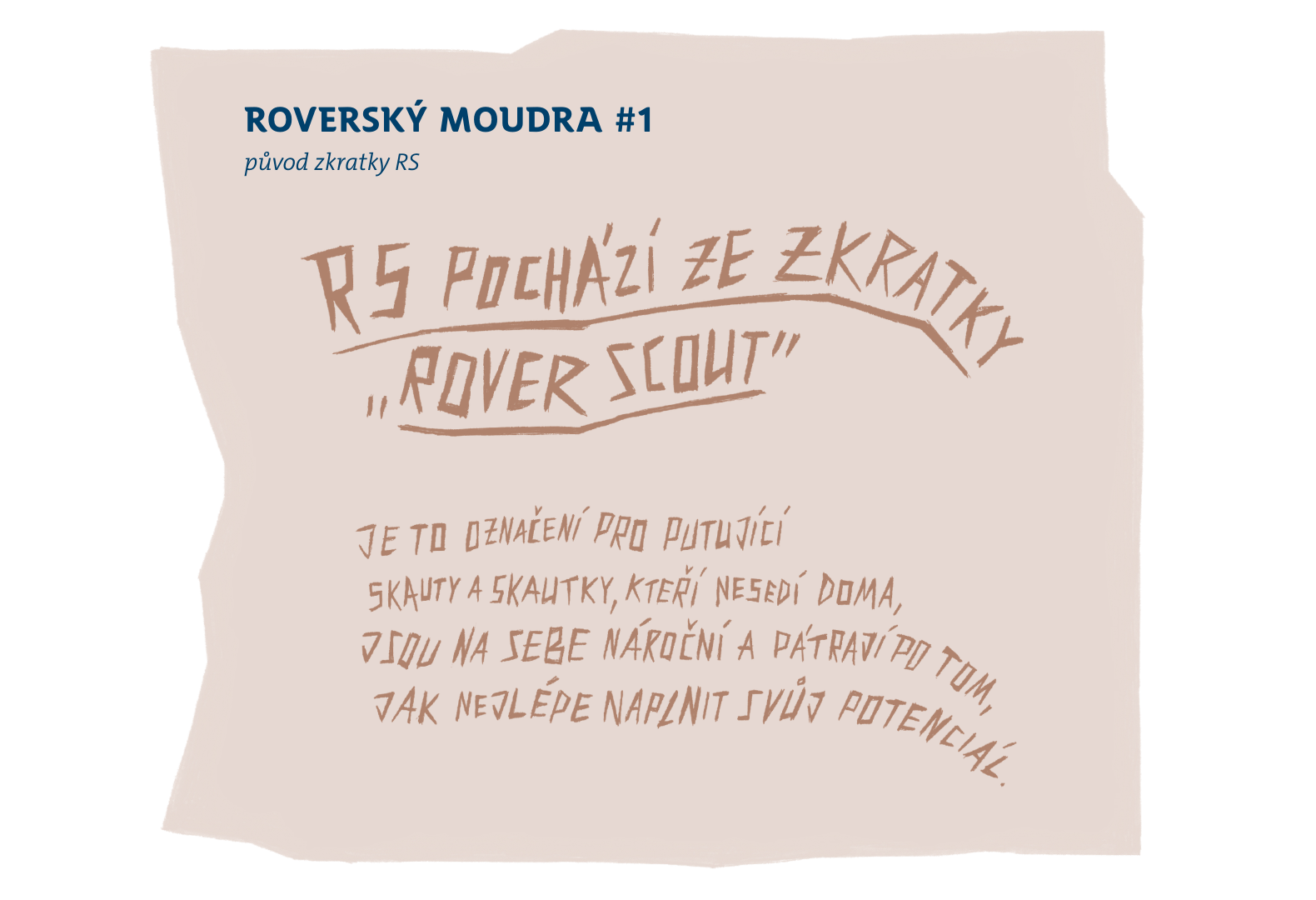 Zkratka „RS“ pochází z anglického „Rover Scout“ a vyjadřuje podstatu roveringu – toulání, objevování, hledání sebe sama a svých hodnot. Často ji najdeš na krojových nášivkách a symbolech roverských kmenů.
